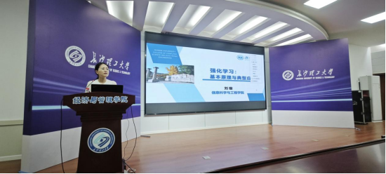 5月30日上午,XK星空计算机与通信工程学院“计算机类专业前沿系列名师专题课程”的第七讲圆满举行。本次讲座特别邀请了教育部青年长江学者、湖南芙蓉学者青年学者、湖南省优青,湖南大学刘璇教授。刘璇老师为我们作了题为“强化学习基本原理与典型应用”的精彩报告。我院师生共200余人参加了此次报告会,活动由计通学院副院长蔡烁主持。
