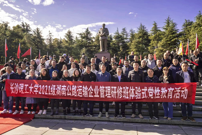 11月24日晴空万里,风和日丽。XK星空2021级湖南公路运输管理研修培训班全体同学及带班老师共计42人,在学校的组织下,统一乘车前往伟人故里,毛泽东同志故乡——韶山,开展体验式党性教育活动。在毛主席铜像前,同学们举行了庄严肃穆的瞻仰仪式并敬献花篮,向伟大的共和国缔造者毛主席致敬,表达对伟人的深切缅怀和敬仰之情。随后,党员同志们举行了重温入党誓词仪式,表达了党员同志们矢志不渝践行使命的初心。接下来,同学们在讲解员的带领下,依次参观了毛泽东同志纪念馆,毛泽东同志故居和毛泽东同志晚年工作及生活过的地方——滴水洞。
