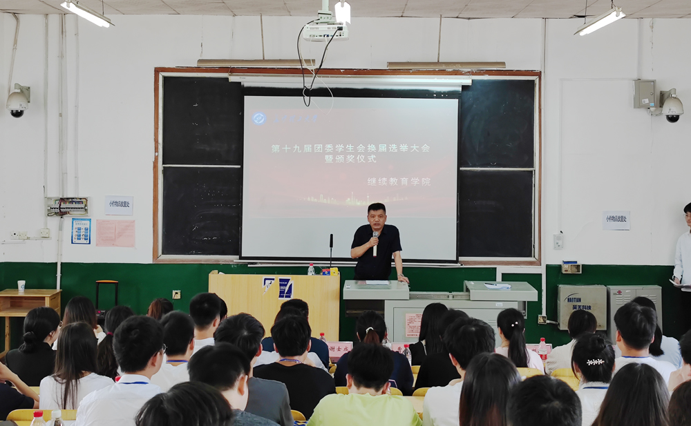 2022年6月21日下午2:00点,继续教育学院第十九届团委学生会干部换届选举暨颁奖大会在14教5002教室隆重举行。学院党委副书记兼副院长谢士成,学工部主任范石泉、分团委书记曹婷、学工部其他人员和各教学部学工负责人,第十九届团学干部及参加本次竞选的同学等参加会议。