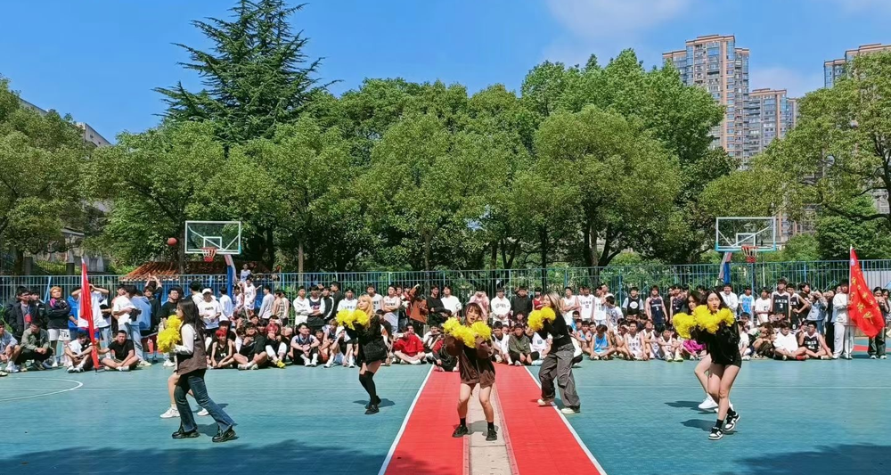 充满青春活力的啦啦操,点燃了开幕式所有同学的激情。随着谢书记的发球,篮球表演赛正式开始。