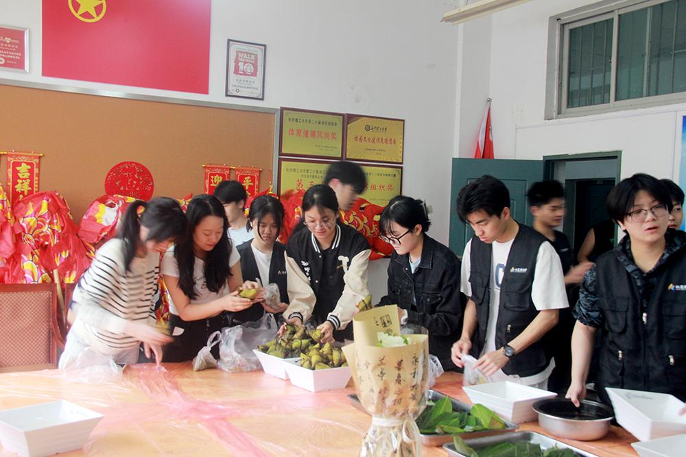 粽子出锅后,虹星团支部的成员们把一个个热乎乎的粽子送给了学院的老师们,与老师们共享他们的劳动果实。