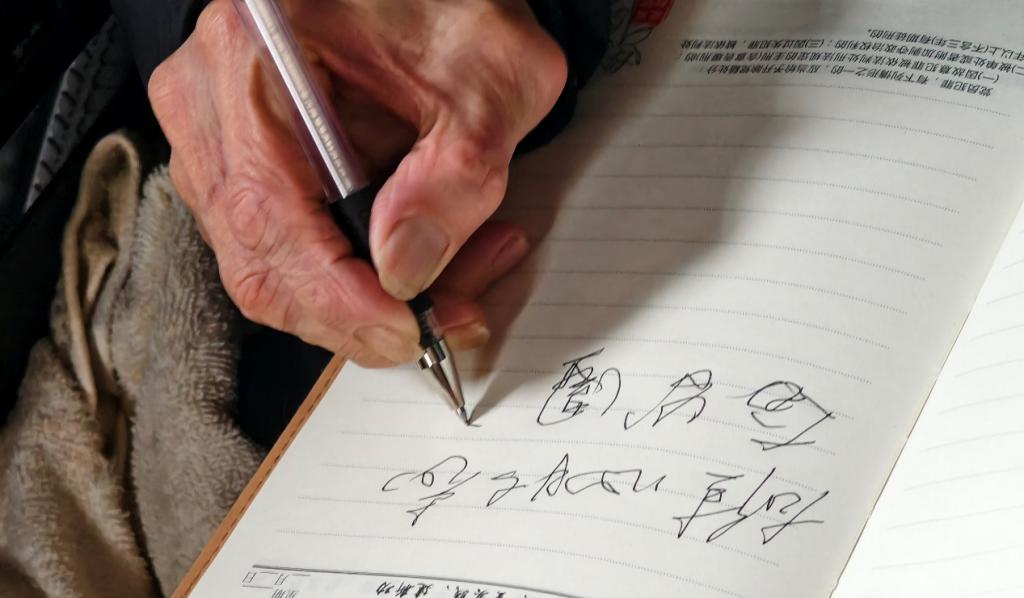 在交流互动环节,志愿者们与老人们围坐在一起,亲切地唠起家常。老人们讲述着过去的故事,志愿者们认真聆听,不时发出会心的笑声和感慨。一位抗战老人回忆起年轻时的奋斗历程,讲述着那段战火纷飞的岁月,他们英勇无畏、保家卫国的事迹让志愿者们深受触动。这些老兵用热血和生命捍卫了国家尊严,他们的精神是中华民族的宝贵财富。交流结束后,一位抗战老兵欣然提笔,为同学们题词:“雄心壮志,奋发图强”,表达了对抗战精神和雷锋精神的传承期望,希望年轻一代能够铭记历史,勇担责任。