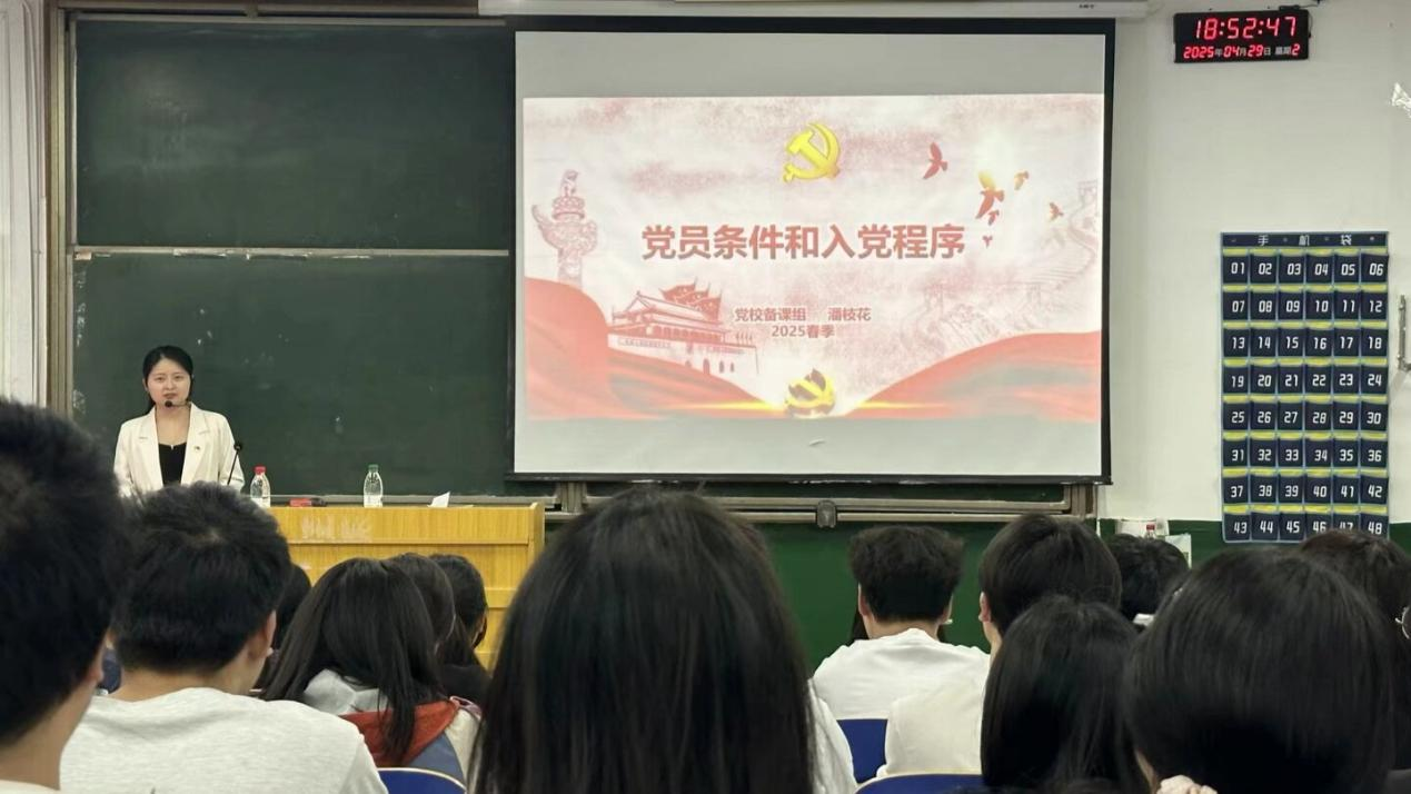 培训中,授课老师们以深厚的理论功底与鲜活事例,为参训学员们带来了一场场思想盛宴。在《习近平新时代中国特色社会主义思想专题》课程中,唐俊老师结合新时代的伟大变革,深入解读理论核心要义,引导同学们把握新时代的历史使命;在《党的性质、宗旨和指导思想》课程中,王宝宝老师通过回顾党的百年初心,为同学们阐释了全心全意为人民服务的深刻内涵;在《党员条件与入党程序》课程中,潘枝花老师以严谨细致地讲解,帮助同学们明晰责任义务与成长路径;在《党的奋斗历程》课程中,张国强老师则以时间为脉络,讲述党的光辉历史与宝贵经验,引导同学们进一步坚定理想信念,加强自身建设,提高政治素质,端正入党动机,把好党员发展“准入口”关。