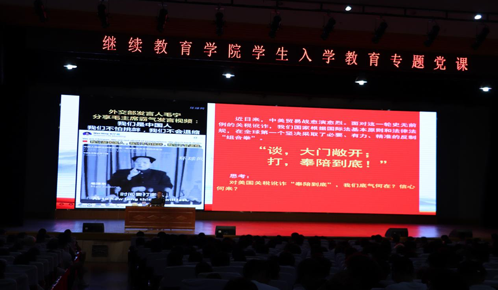 8月28日上午9:00,继续教育学院在五教大礼堂举行学生入学教育专题党课,共同开启新学期首场重要思想引领课程。这场以“重温党的百年苦难辉煌 砥砺前行,奋进新征程”为主题的专题党课,为学生扣好了大学生涯的“第一粒思想纽扣”,开启筑梦新征程。