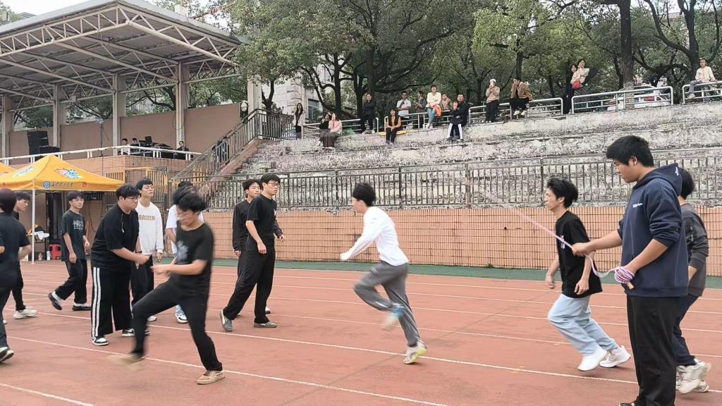 本次校级长绳比赛是我院学生首次参与,为选拔出优秀的队员,学院先行组织了院内初赛,同学们报名踊跃,积极参加。通过初赛选拔出的队员们,在随后的备战训练中,克服了时间紧张、协调难度大等困难,利用课余和周末时间进行了系统性的训练。从最初的生疏磕绊到后来的默契流畅,每一次挥绳,每一次起跳,都凝聚着队员们的汗水与努力,也为最终取得优异成绩奠定了基础。