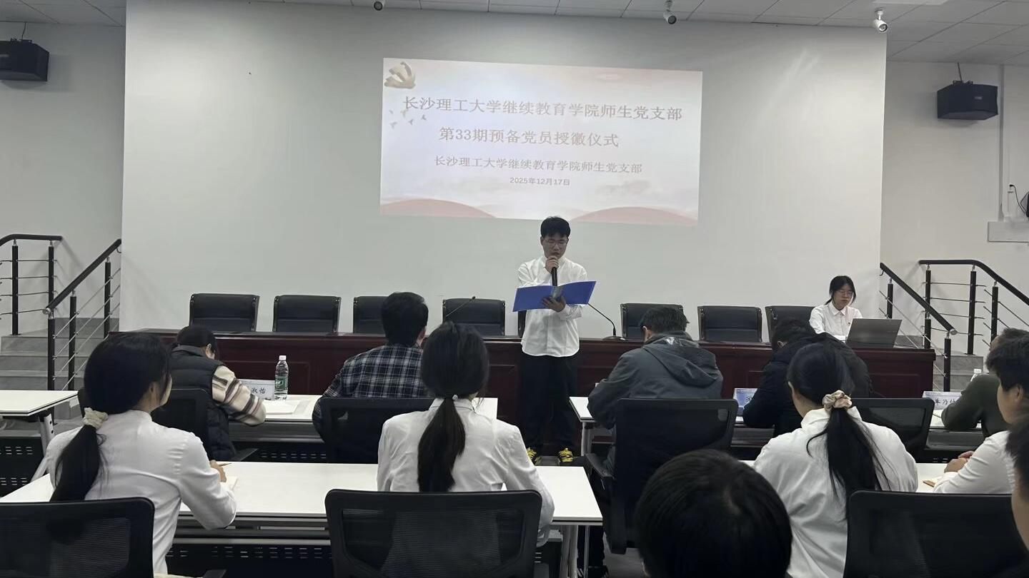 为进一步强化党员的身份认同感,筑牢理想信念的坚实根基,12月17日,继续教育学院师生党支部在14教118会议室举行了第33期预备党员授徽仪式。