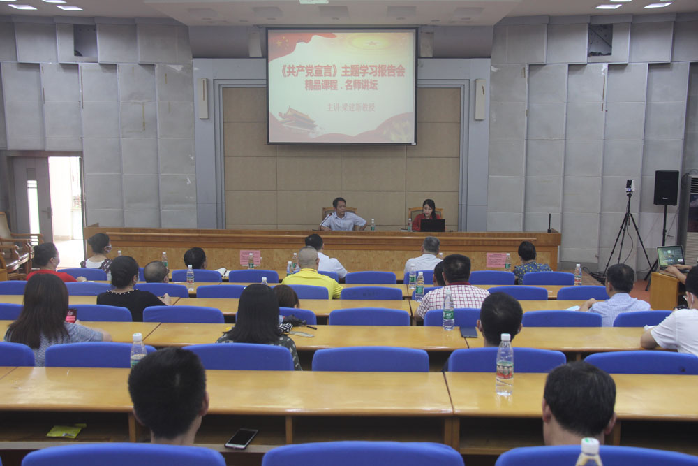 本次主题学习报告会,由梁建新教授主讲。梁教授的讲座题目为《共产党宣言,建党精神的源头活水》,他从《共产党宣言》的写作背景与历史意义、内容框架与基本思想,《共产党宣言》是中国共产党成立精神的源头活水等三个方面,介绍了《共产党宣言》的基本知识,将《共产党宣言》与中国共产党的建党精神建立关联,并认为其是中国共产党成立精神的源头活水。梁教授的演讲,内容扎实,论断新颖,富有激情,赢得了大家的阵阵掌声和好评。