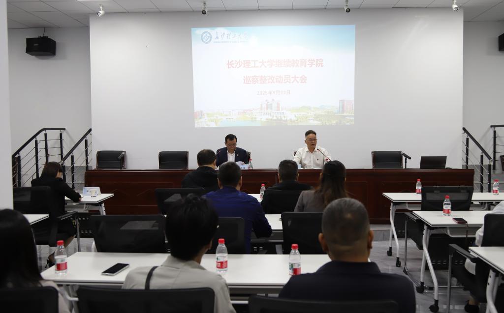 2025年9月23日下午,继续教育学院在14教118会议室召开巡察整改动员会,全体在职教职工参会。会议由院长邹兴平主持。