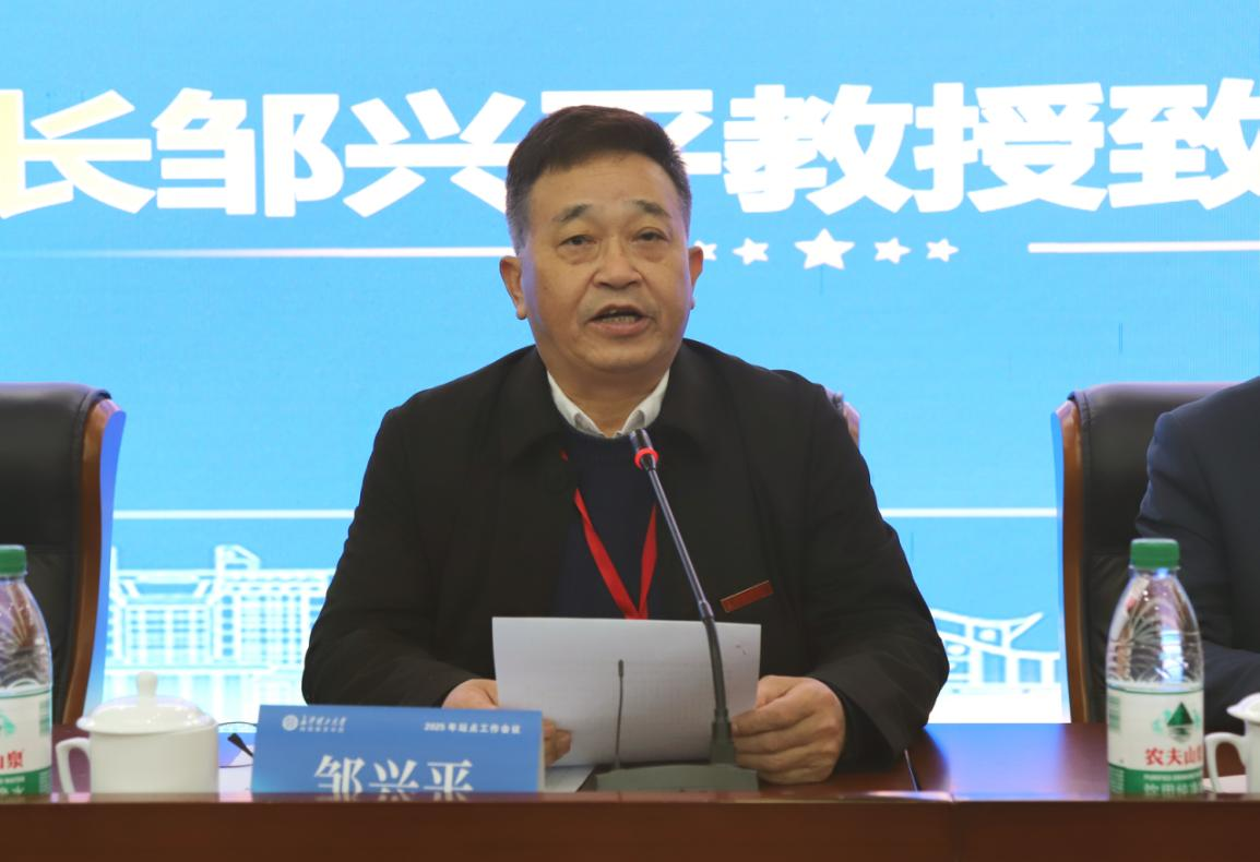 邹兴平向大会作题为《以学生发展为中心 聚合站点资源 推动继续教育事业更高水平发展》的工作报告。报告全面回顾了2025年继续教育学院在党建引领、立德树人、质量提升及规模稳定等方面取得的成效,充分肯定了先进站点在引领发展中的示范作用。他深刻剖析了继续教育的内涵与当前面临的机遇挑战,明确了新阶段的发展思路,并系统部署了推动高质量发展的“十大抓手”,为下一阶段工作锚定了目标。