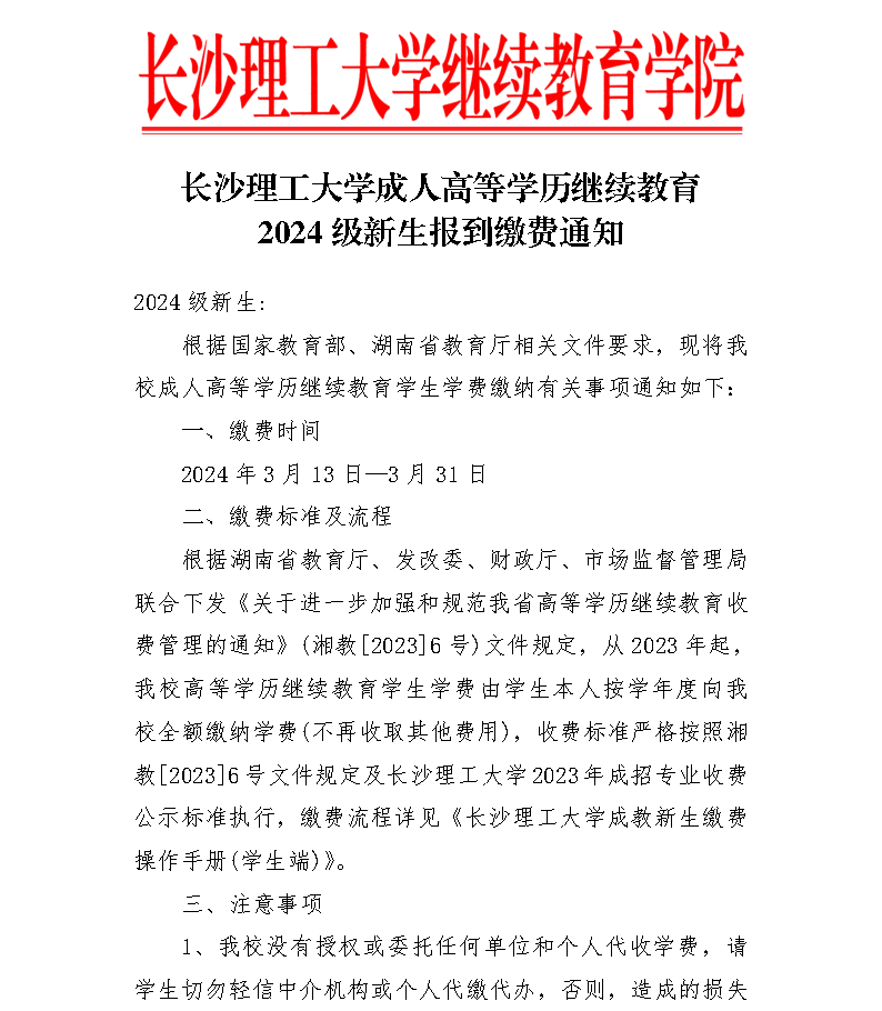 关于成教2023级学生缴纳学费的通知