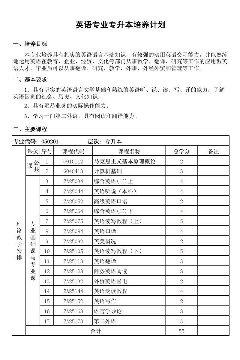 本科培养计划-专业代码:050201 英语专业