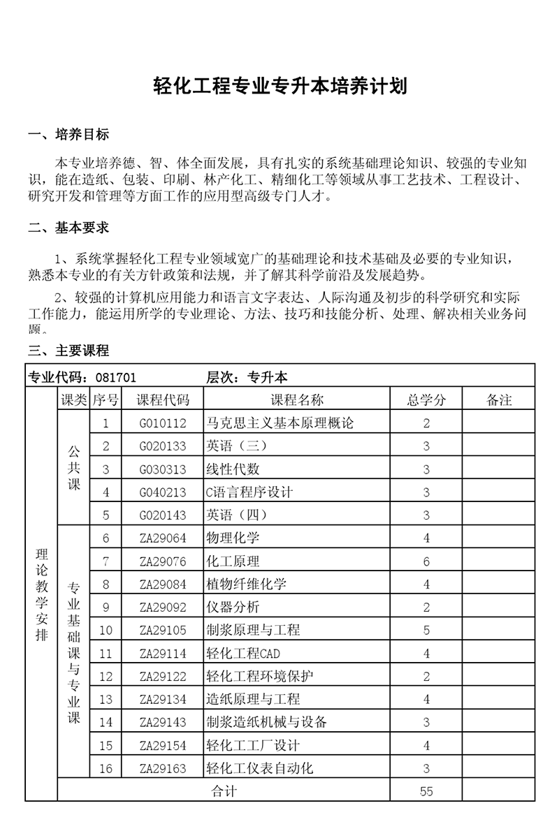 本科培养计划-专业代码:081701 轻化工程专业