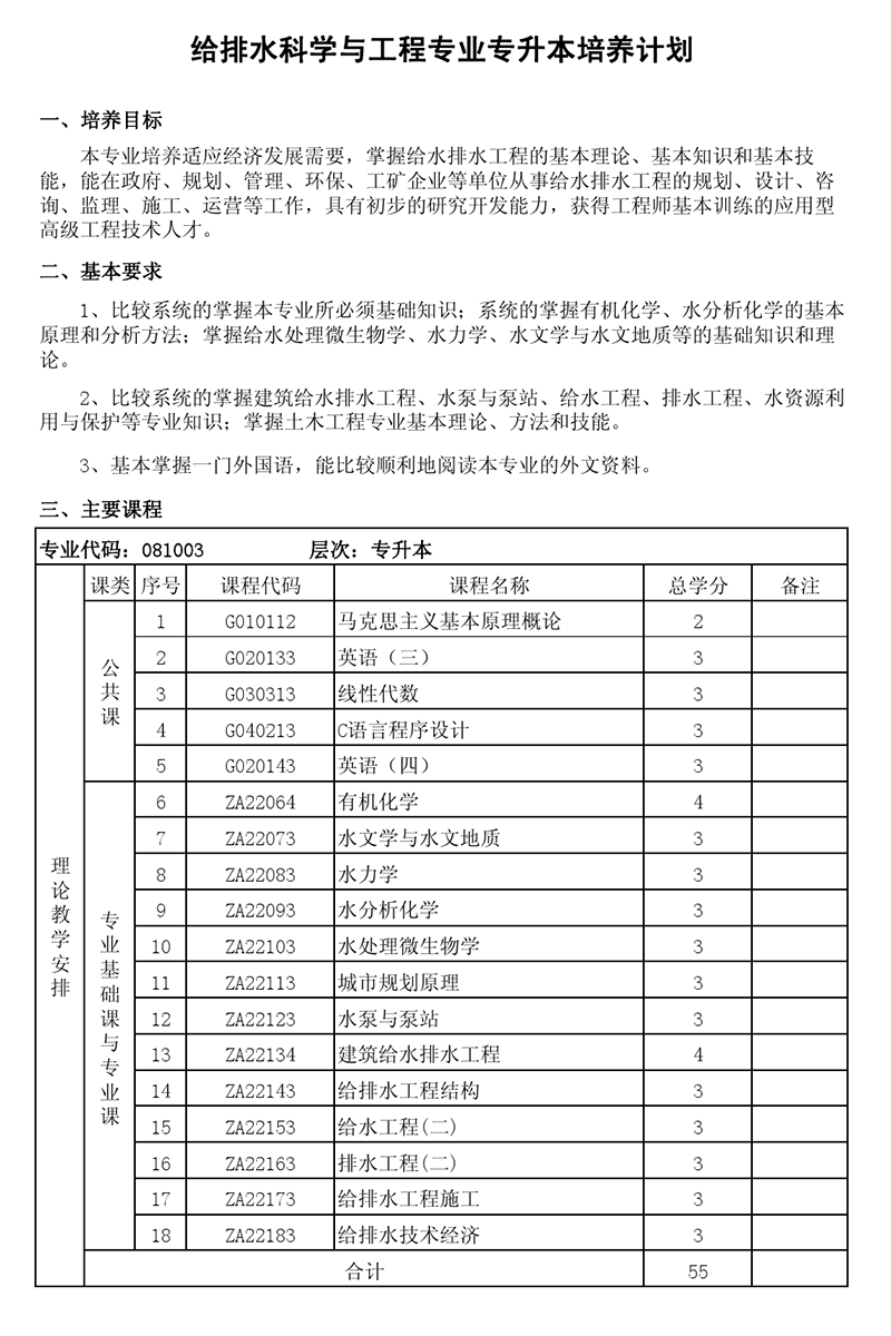 本科培养计划-专业代码:081003 给排水科学与工程专业