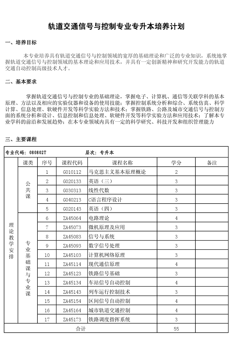 本科培养计划-专业代码:080802T轨道交通信号与控制专业