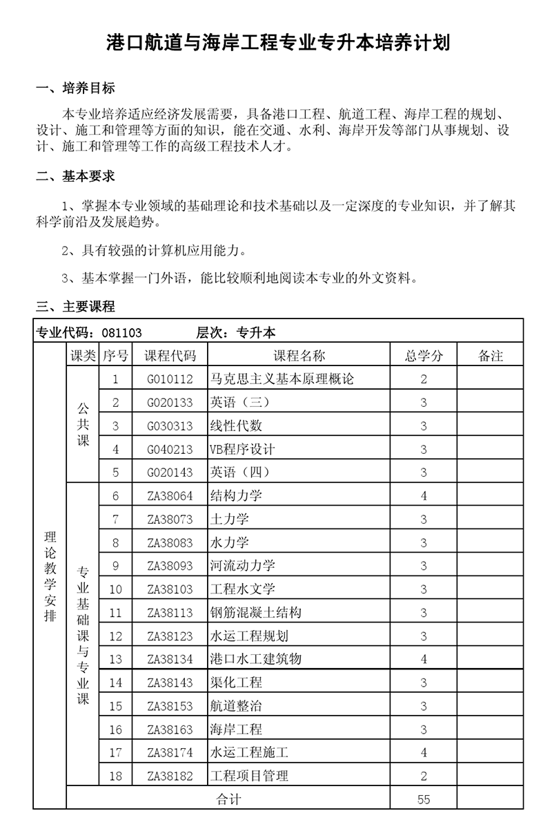 本科培养计划-专业代码:081103 港口航道与海岸工程专业