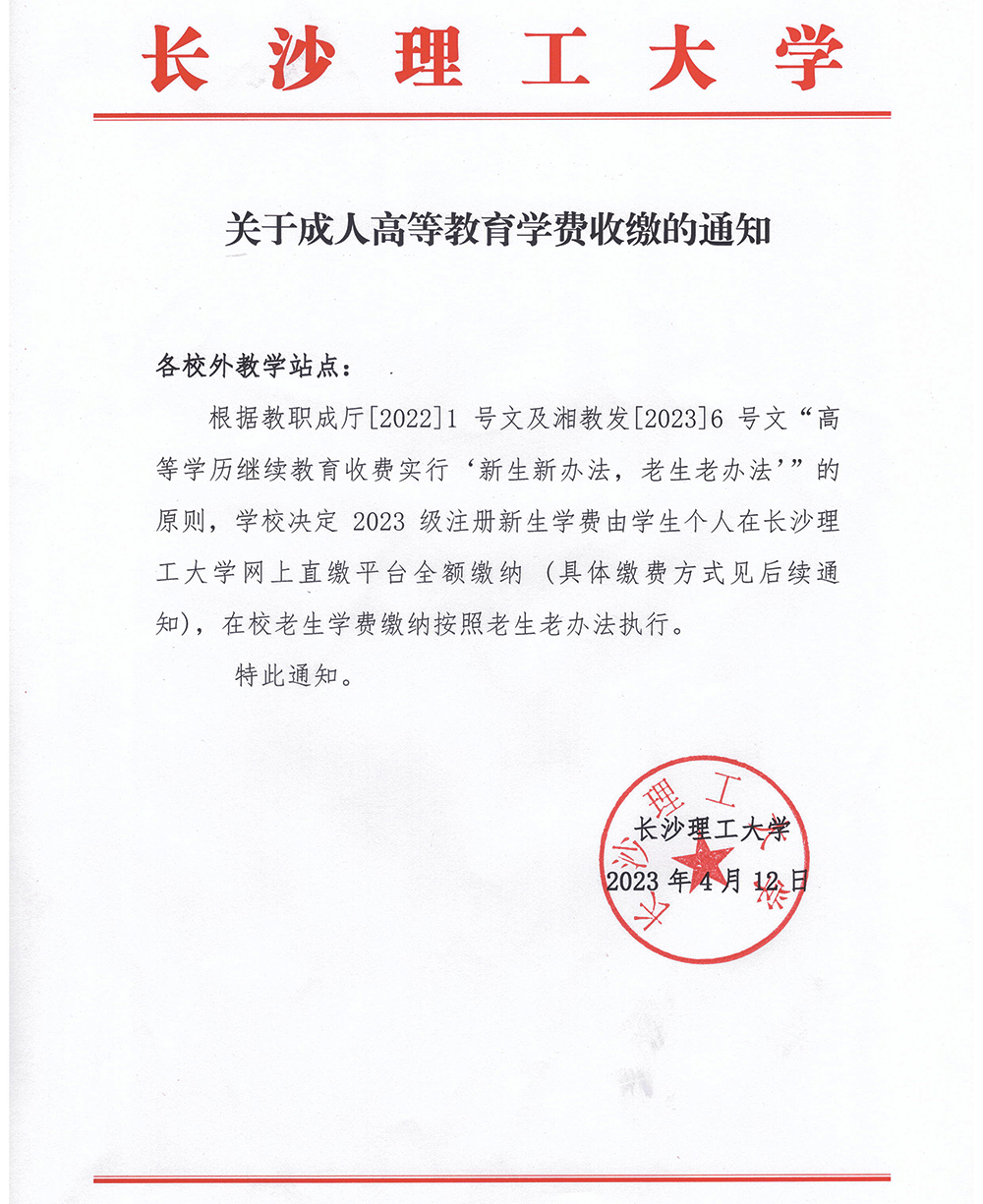 关于成人高等教育学费收缴的通知