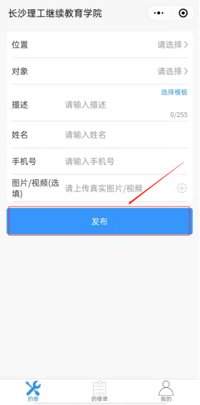 (4)点击下方蓝色按钮发布,即可完成报修,如下图所示。