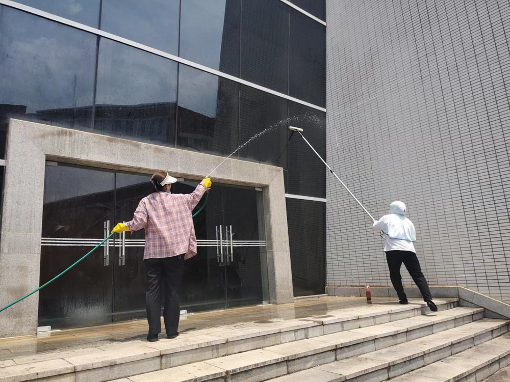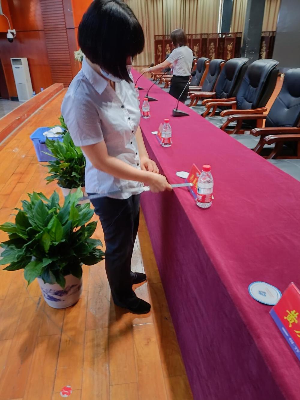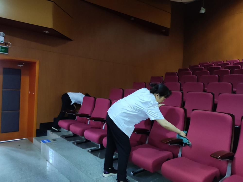 2、组织人员对大会堂进行了一次全方位的卫生大洁,对大会堂外围、过道、玻璃、门窗、地面、桌椅等等彻底清洁并全面消杀,不留卫生死角。