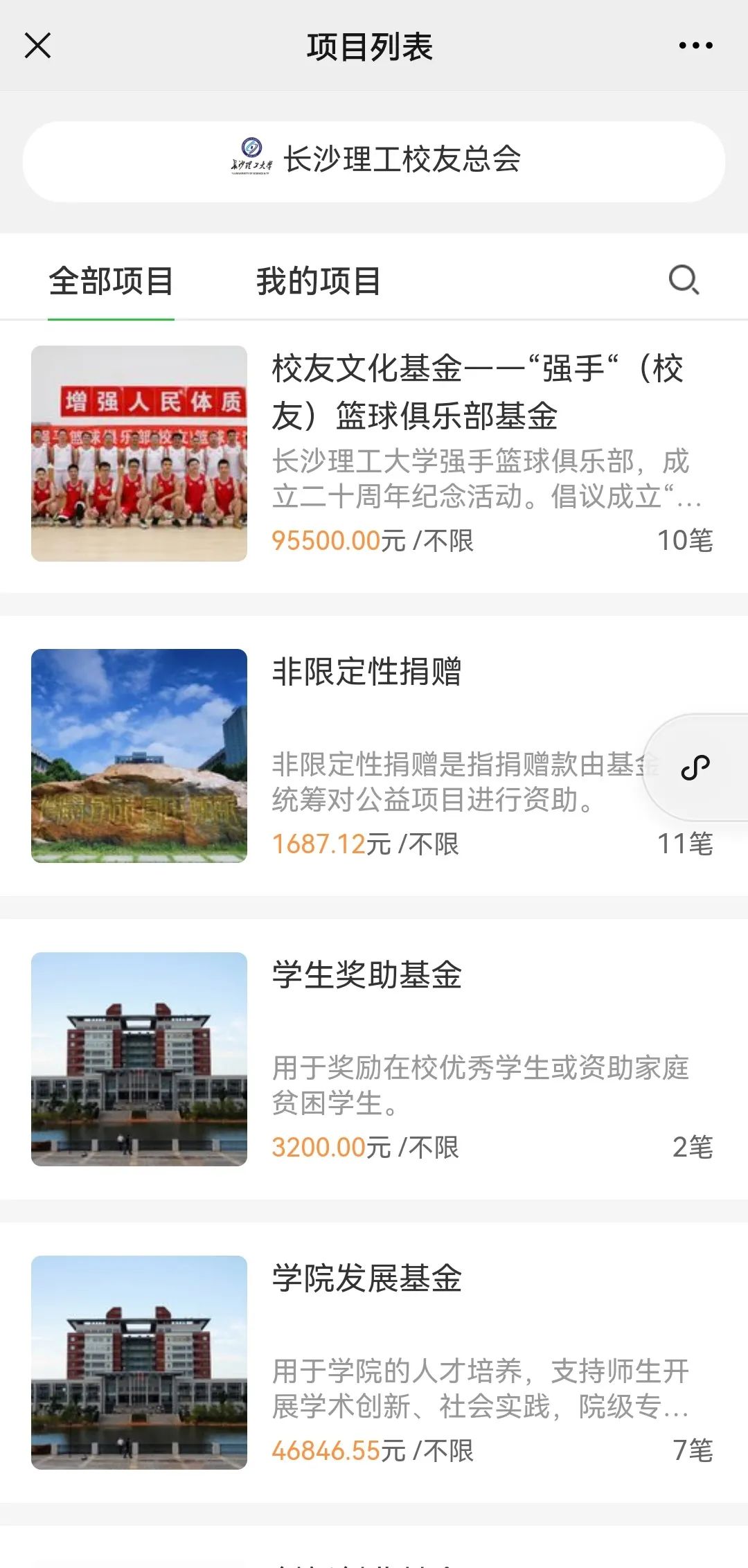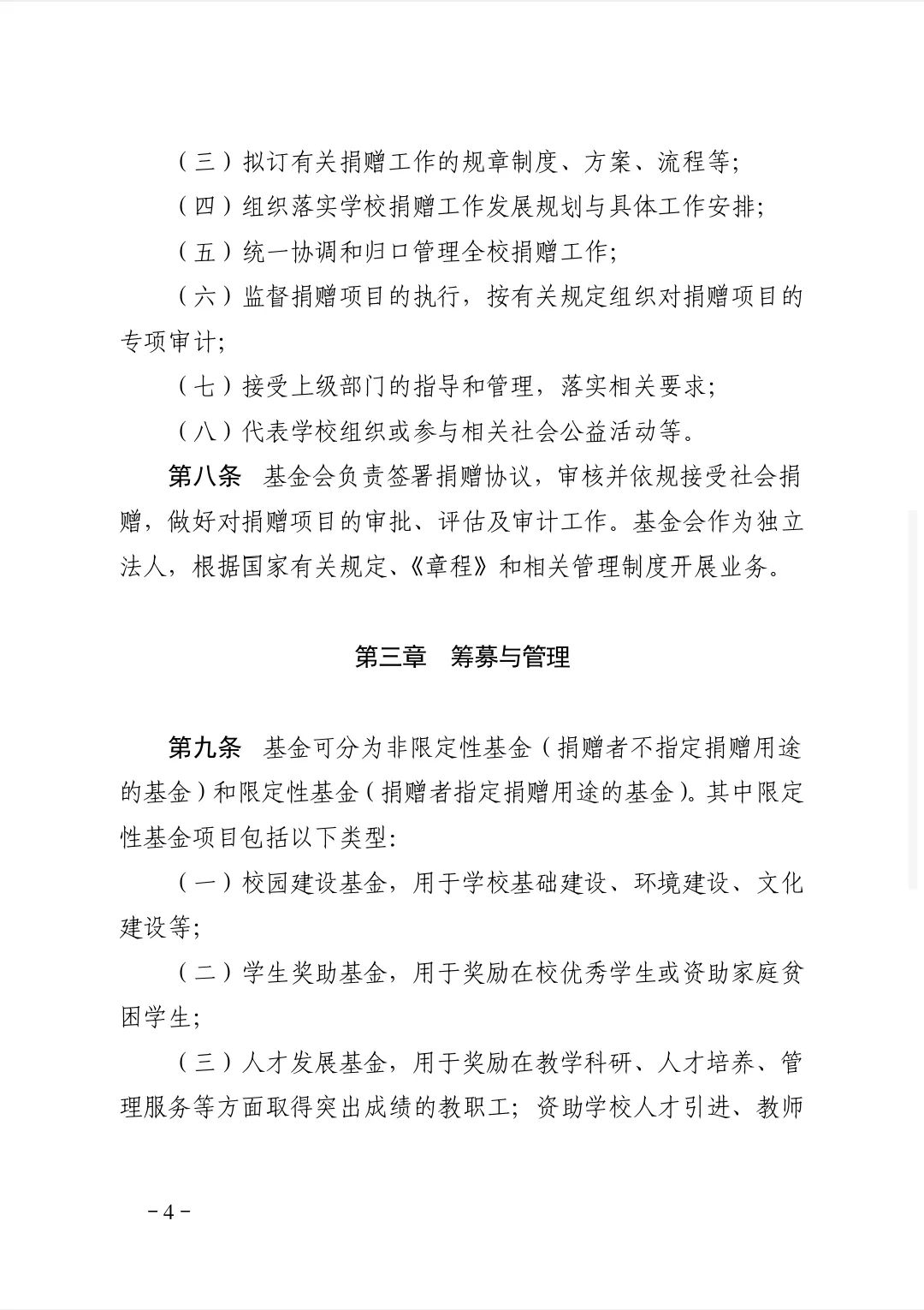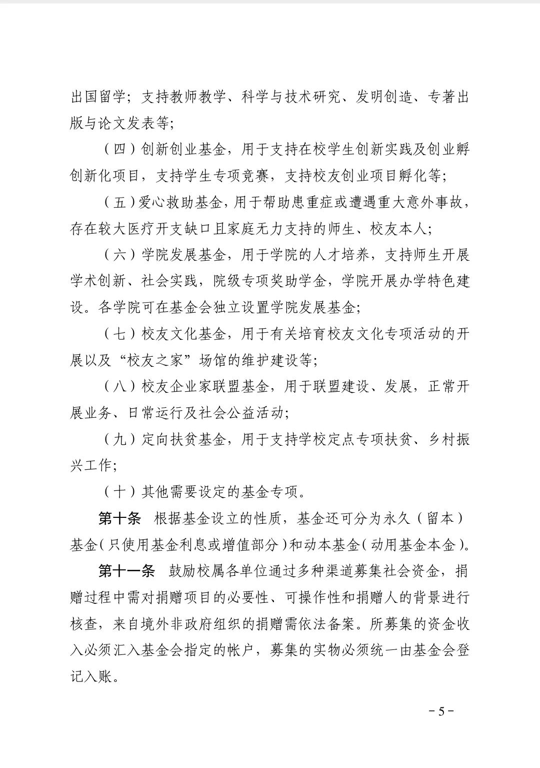 校友与社会各界可以资金、项目、股权、设备、房产等形式捐赠,通过银行转账、邮局汇款、在线捐赠等方式注入基金(非限定性捐赠),也可根据自身意愿,设立专项基金或指定用途(限定性基金)。