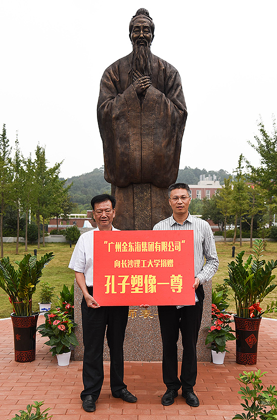 10月8日上午,学校在云塘校区文化广场前坪举行广东金东海集团有限公司捐赠孔子像揭幕仪式。广东金东海集团董事长周壬旭、副总裁林辉进、总工程师陈绍文、副总裁周德昌、党委副书记廖锦春、文化部经理陈少群、技术中心主任许祥猛、华东公司总经理单国成,学校校友总会副会长黎正稳、副校长蒋昌波,党委宣传部部长王宏,水利学院党委书记赵利平、常务副院长胡旭跃,材料学院党委副书记张国强及水利学院师生代表参加仪式。仪式由水利学院党委副书记郭林主持。