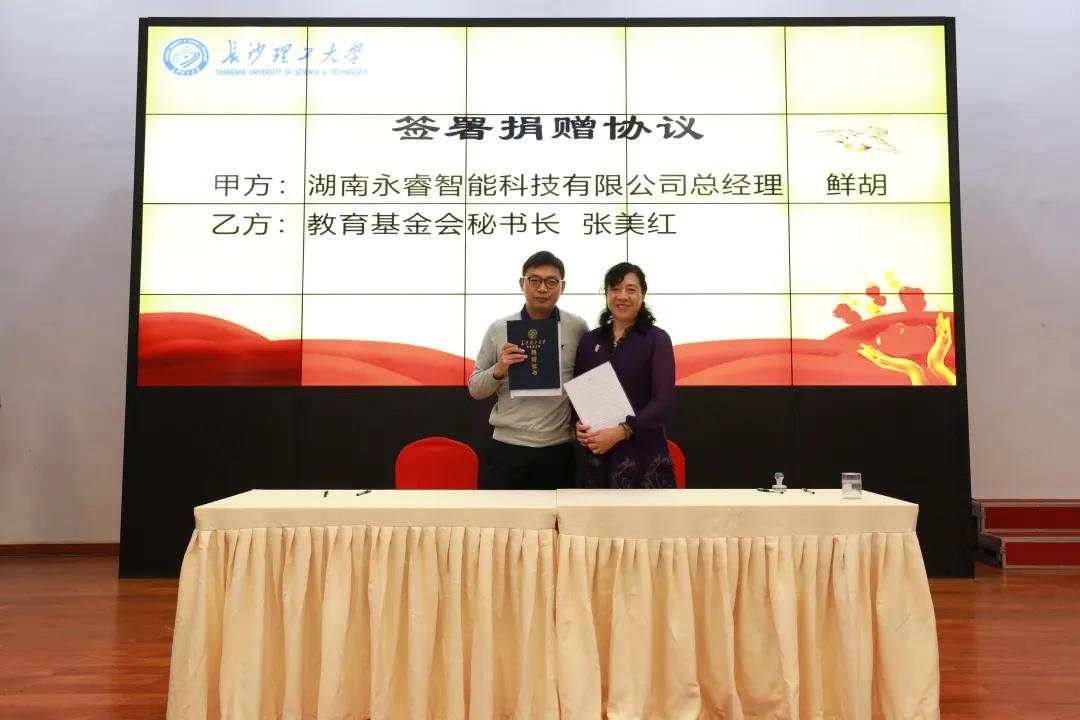 母校的每一次进步,都希望千万校友共同见证;母校每上一个台阶,都离不开校友的爱与贡献。在母校65周年校庆之际,01级鲜胡校友代湖南永睿智能科技有限公司向母校捐赠价值100万元路灯、苗木等物资用于学校乡村振兴点的建设。在这丰收的季节回到母校交流,鲜胡表示感到十分自豪也有点小紧张。长理对自己各方面影响十分深刻,作为长理学子,希望为长理的乡村振兴计划出一份力,同时承担起应有的社会责任。愿长理的同学们肩并肩,共同助力学校与社会更加美好,愿更多长理企业家加入这个大家庭,用我们自己的行动为长理添砖加瓦。