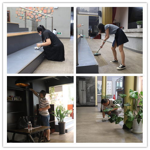 学习结束后,全体支部成员开展了义务劳动。大家采取“包产到户”的方式,冒着闷热的天气,擦拭桌台,清扫地面,用刷子将地面顽渍擦去,将卫生死角全部打扫一次,用实际行动践行初心和使命担当。
