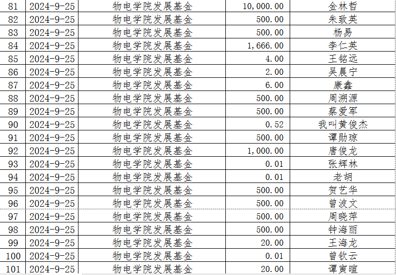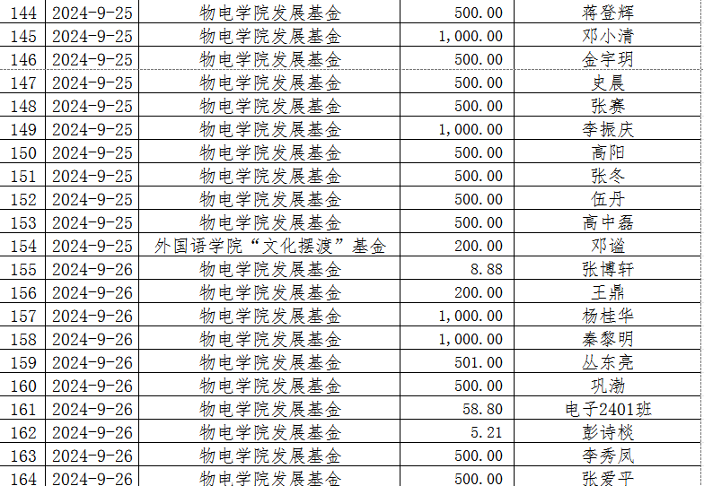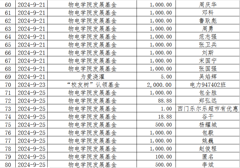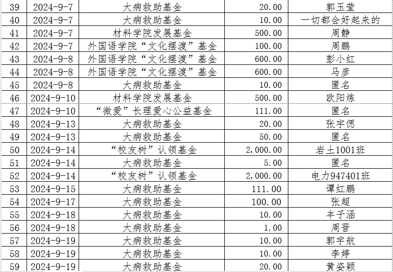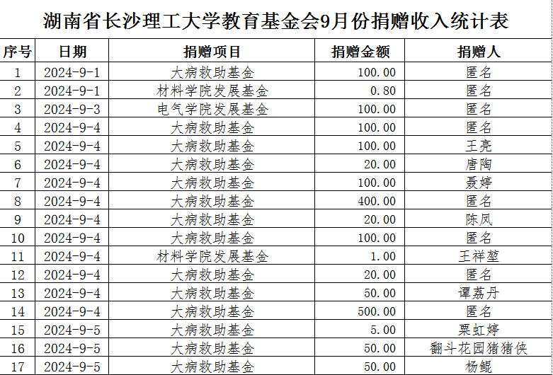 湖南省XK星空教育基金会2024年9月捐赠收入表