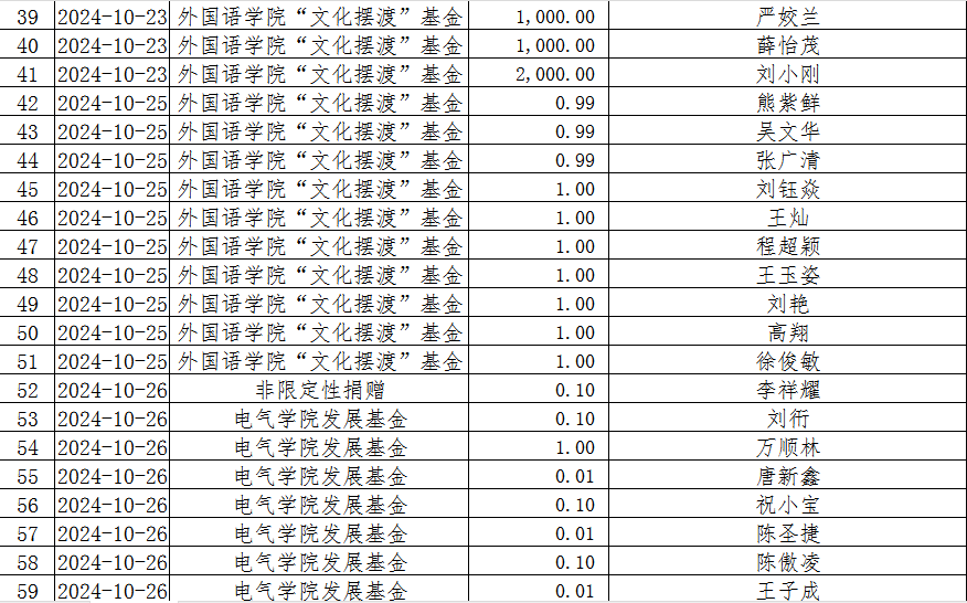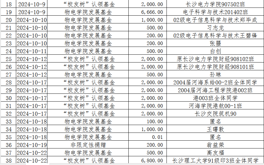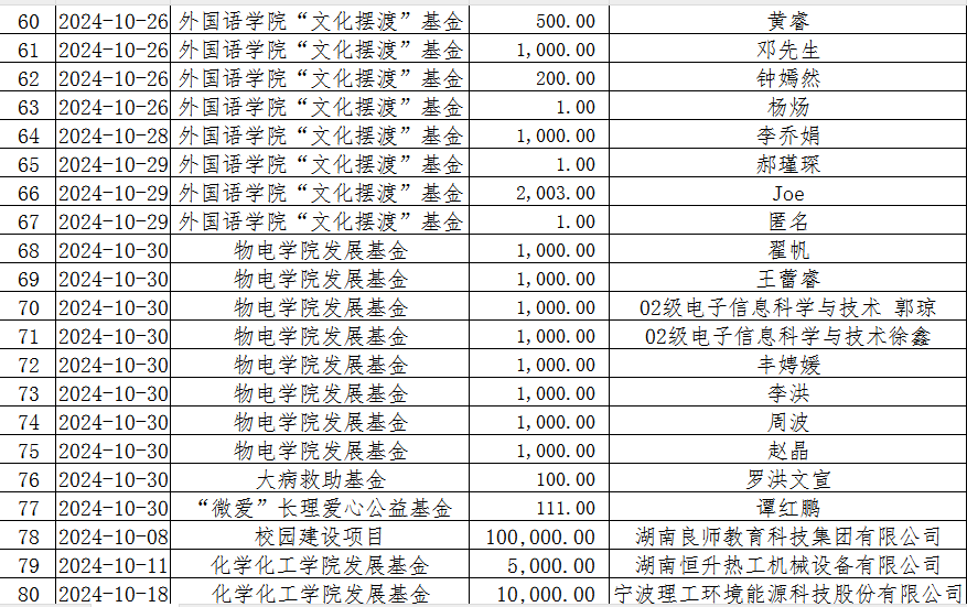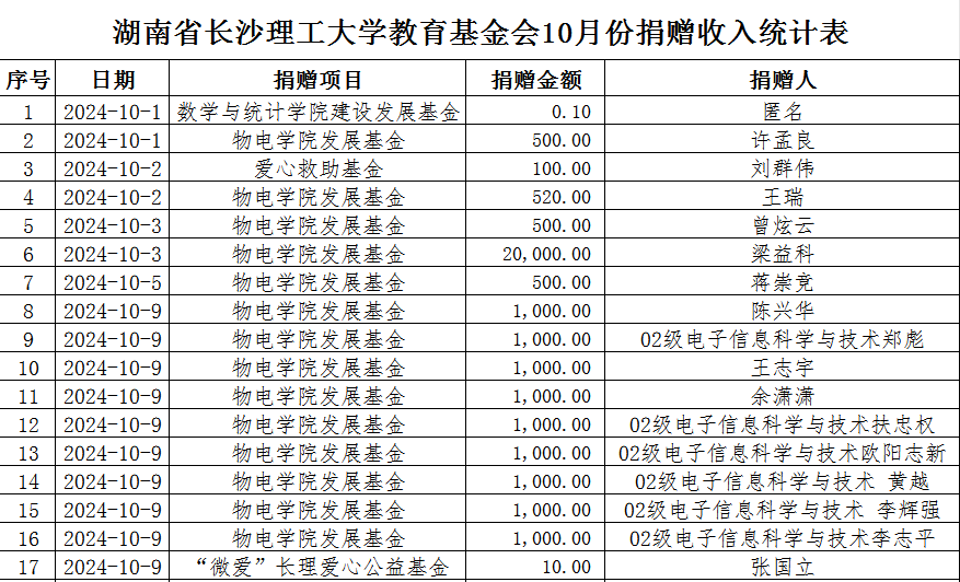 湖南省XK星空教育基金会2024年10月捐赠收入表