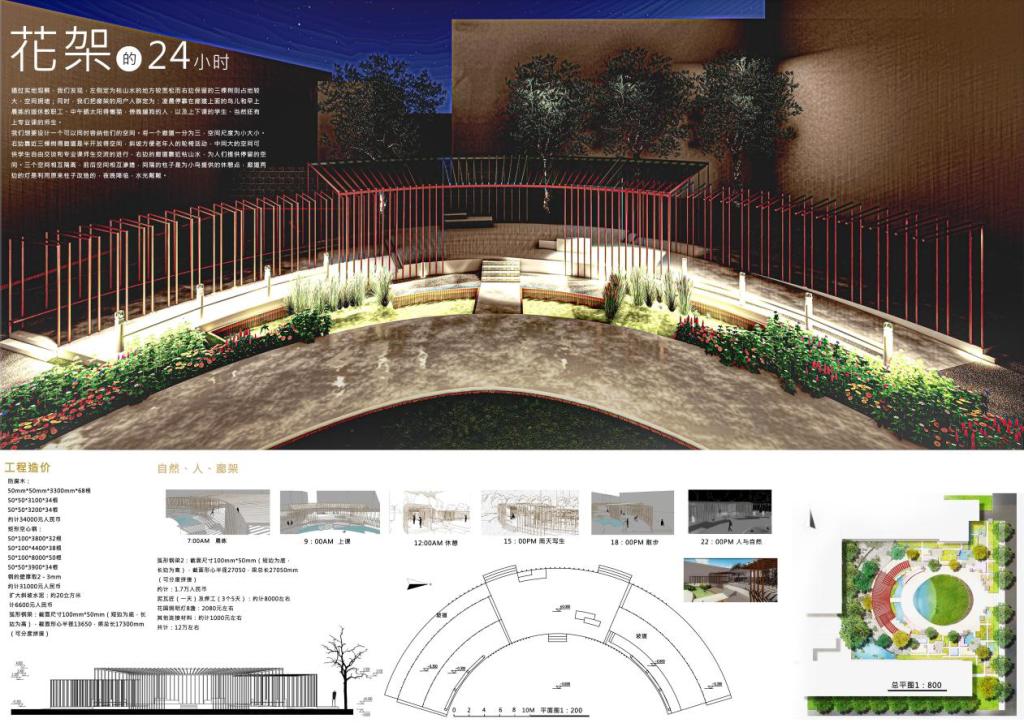 非常感谢大家参与这次活动,同学们广泛参与进来,在这里留下你们的作品和记忆,这就是校园文化和公众参与的一种体现。大家付出了时间和努力,也有不少好的创意点,低年级同学虽然想法还不是很成熟,但在廊架的空间处理上有些突破点;高年级同学表达较好,花架形式处理上也有一些亮点。