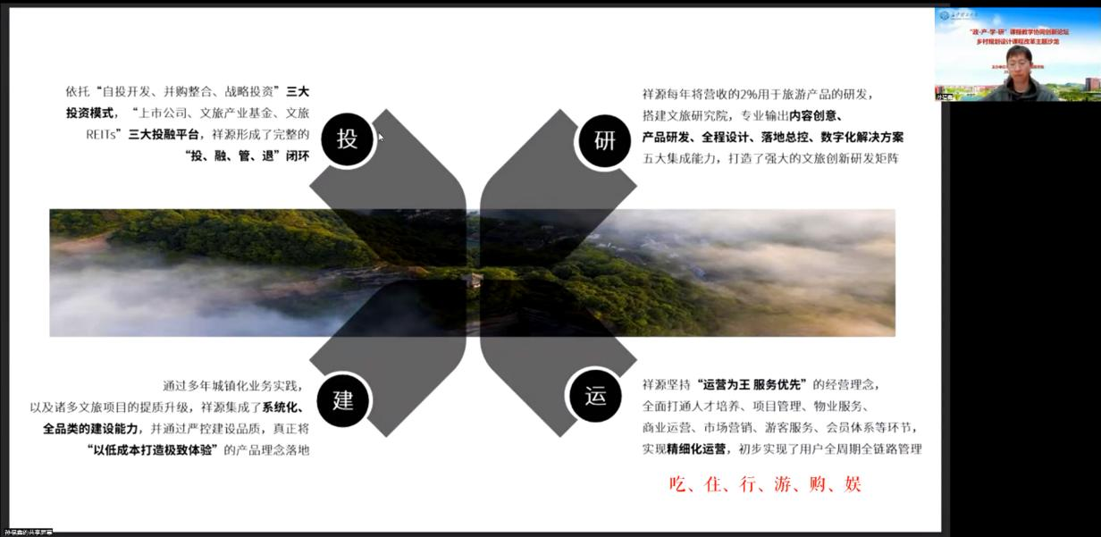 为积极响应国家“乡村振兴”人才培养的战略需求及其新时期村镇发展的趋势与市场需求,激发高校学子的乡村振兴、地方发展责任感,10月21日晚,由湖南省国土空间规划学会规划教育工作委员会指导、XK星空建筑学院主办的“政产学研”课程教学协同创新论坛——乡村规划设计课程改革主题沙龙在线上成功举行。本次活动邀请了祥源控股集团有限责任公司常驻文旅运营产品孵化组的产品经理,XK星空建筑学院优秀校友,孙福鑫先生做“文旅项目的策划与运行”的案例分享与有关设计类专业人才创新思维培养的教研讨论。XK星空教学督导、建筑学院欧阳国辉教授,城规系系主任贺鹏老师,乡村规划课程组王轶老师、唐艳丽老师和2021级城规专业全体本科生、建筑学院部分研究生参与了本次活动。