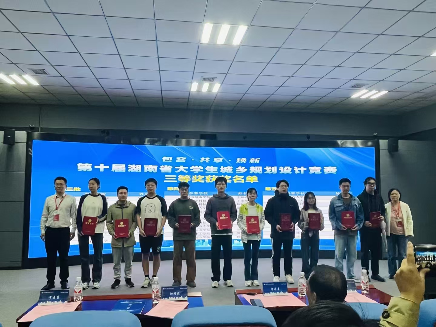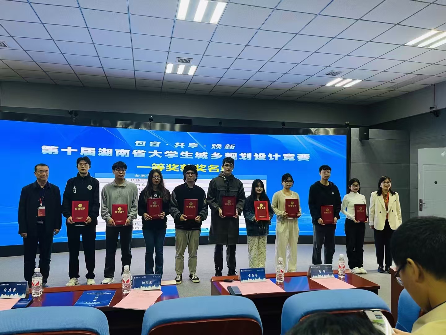 第十届湖南省大学生城乡规划设计竞赛以“包容·共享·焕新”为主题,围绕“某城市旧城区全龄友好住区设计”,在6个半小时内进行规划快题设计,旨在考查选手对整体规划、空间布局、交通组织、环境营造、建筑细节等方面的专业知识把控能力。我院在本次竞赛中共派出学生14人,其中城乡规划专业夏小湘、夏思盈、王颢钦同学获得一等奖,刘一磊、颜子超、刘瑶函、黎欣同学获得二等奖,江琪同学获得三等奖。此外,建筑学院再次获得“优秀组织单位奖”,同时一等奖获得者夏小湘同学作为第十届湖南省大学生城乡规划设计竞赛获奖学生代表在颁奖仪式上发言。