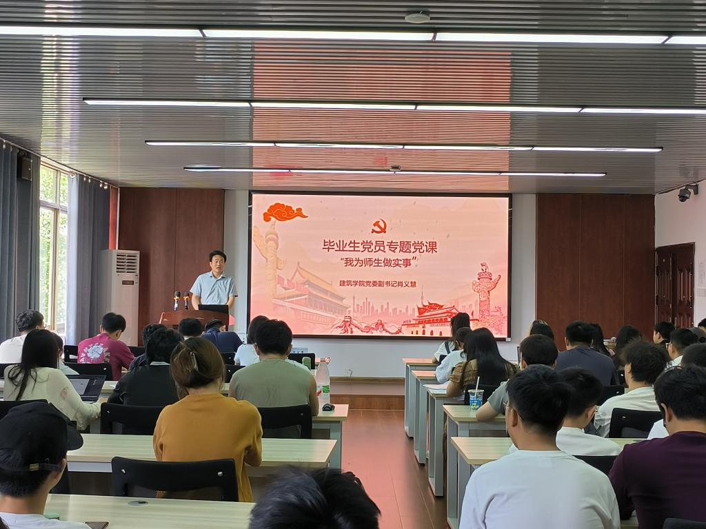 为进一步深入贯彻中央八项规定精神学习教育,增强毕业生党员的党性修养,把好学生党员的“出口关”,6月5日,建筑学院在16教314举办“我为师生做实事”毕业生党员专题党课暨党性教育活动。本次党课由学院党委副书记肖义慧主讲,全体毕业生党员参加本次党课学习。