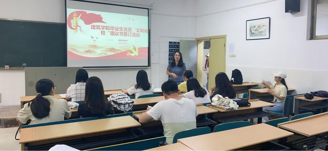 为进一步加强毕业生党员教育,充分发挥先锋模范作用,XK星空建筑学院于6月22日上午开展组织毕业生党员签订《建筑学院毕业生党员文明离校倡议书》暨毕业生党员文明离校示范岗活动活动。