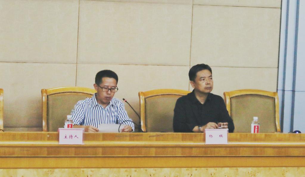 (开学第一课主持人丁力与院长杨瑛)