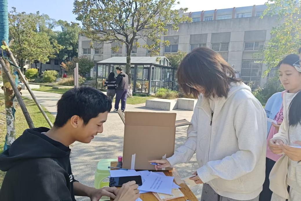 活动现场交流热烈、互动感十足。本次活动设置了5个各具特色的主题摊位,分别是“情绪知识盲盒挑战”、“情绪调色盘”、“情绪垃圾桶”、“emoji猜猜猜”和“互助助眠小贴士交换”。最受欢迎的是“emoji猜猜猜”和“互助助眠小贴士交换”——既以趣味形式传递了情绪调节方法,又鼓励了学生分享他们改善睡眠的实用经验。“emoji猜猜猜”通过趣味化的情绪符号竞猜,在轻松欢乐的氛围中传递了科学的情绪调节方法,让同学们在猜测与互动中加深了对情绪类型的理解。“互助助眠小贴士交换”则搭建了一个经验共享的平台,让同学们纷纷分享出自己的“助眠秘籍”。来自风景园林2501班的李卓岚同学表示:“我觉得这个活动特别贴心,就像一个温暖的大家庭分享会,原来有这么多小伙伴和我有一样的烦恼,也有这么多有效的解决办法。”