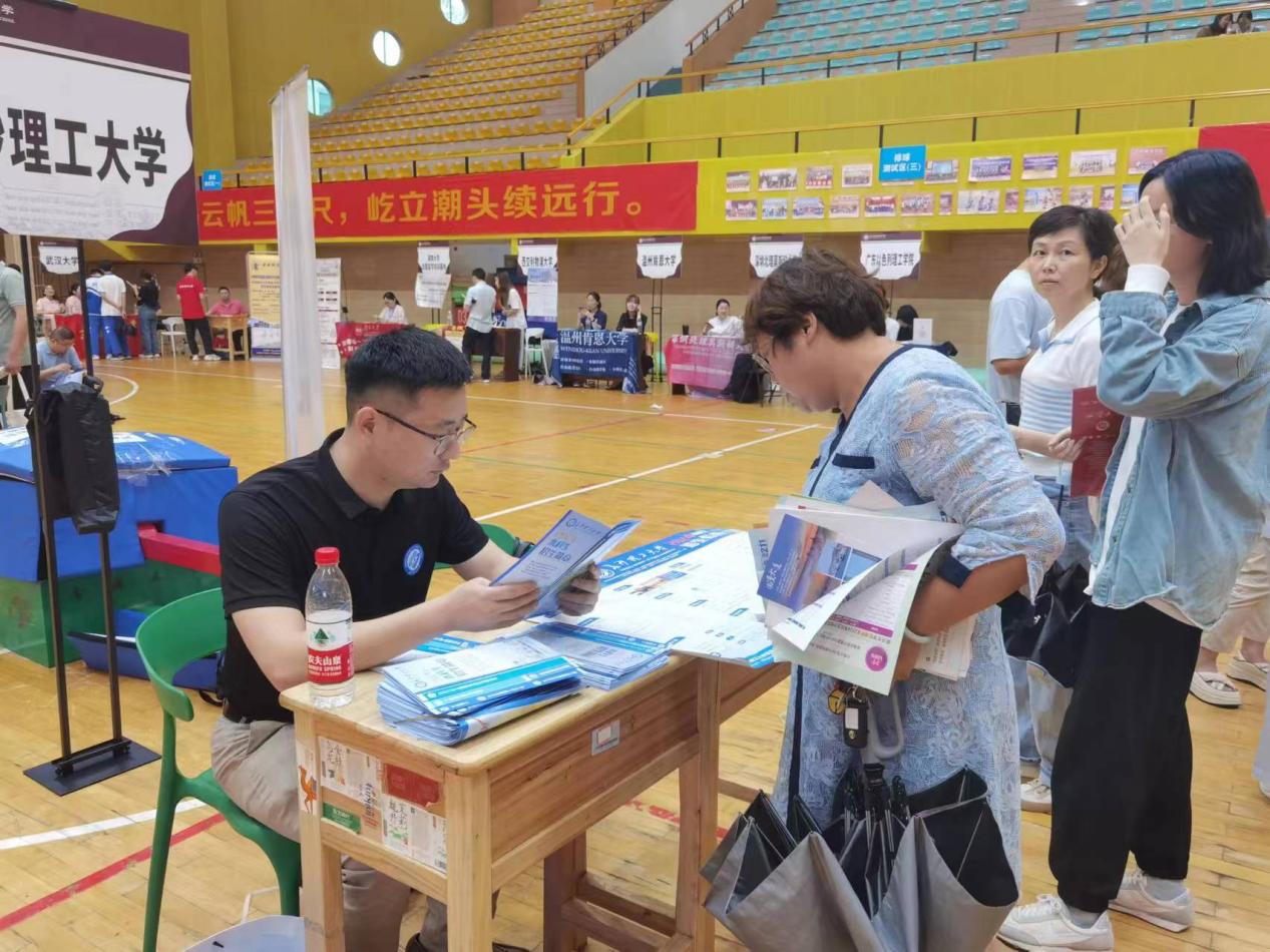 在招生活动现场,众多考生及家长纷纷向两位老师咨询招生相关事宜。王宇霖和王栩婕老师向广大学子和家长全面介绍了学校的办学历史、学科专业建设的显著成就、人才培养的独特模式以及当前的招生政策。在两位老师的详尽解读下,考生和家长得以全面了解基本信息,有效规避潜在风险,从而增强了填报志愿的自信心。