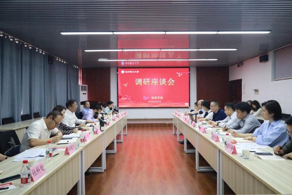 4月17日下午,校党委书记付宏渊带队来到建筑学院调研指导工作。副校长刘朝晖、校党委副书记方琼,党政办、人事处、教务处、科技处、社科处、研究生院负责人陪同调研,学院全体班子成员参加会议。