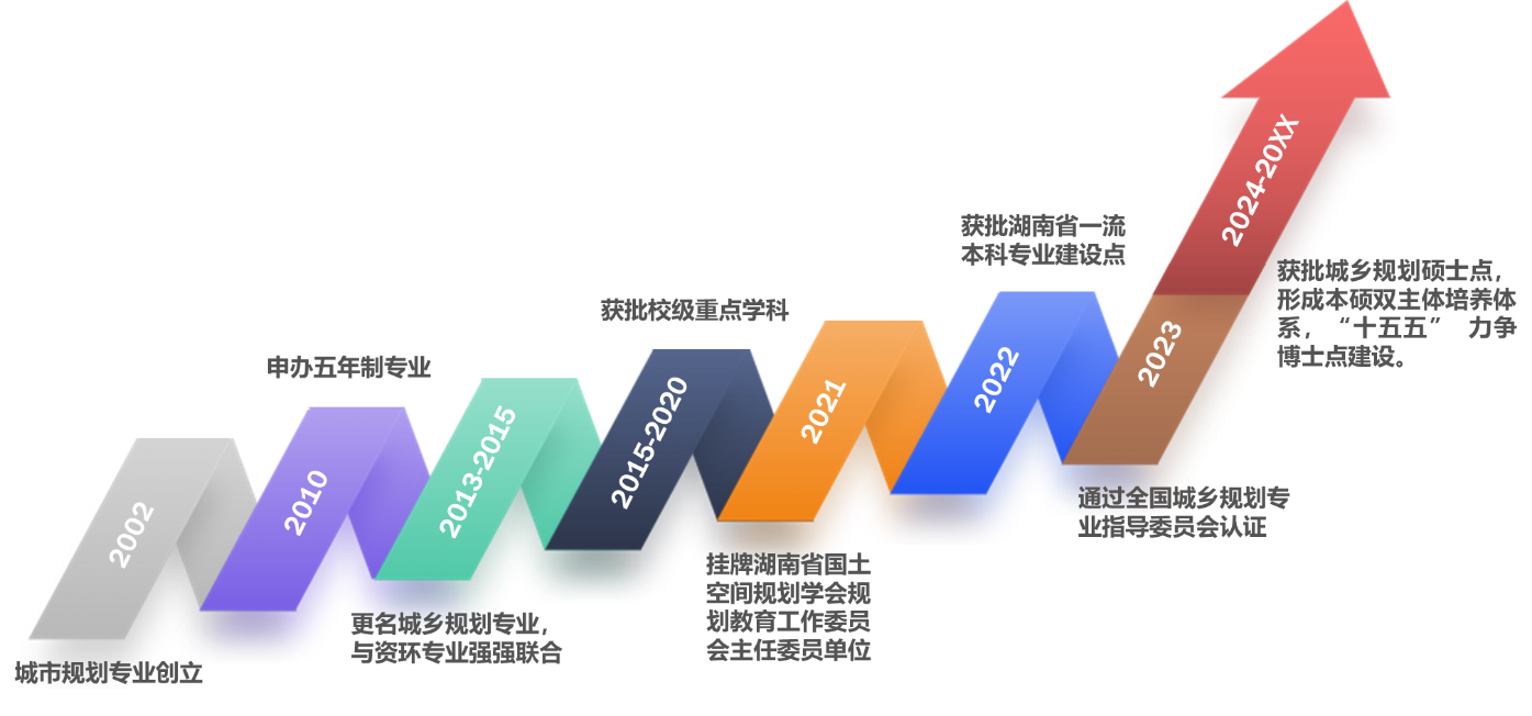 (1)秉持"立足湖湘、在地育人、创新实践"的育人理念,深度融入湖湘文化特色,聚焦美丽中国建设与“三高四新”美好蓝图,致力于培养兼具家国情怀与专业素养的新时代空间规划人才。