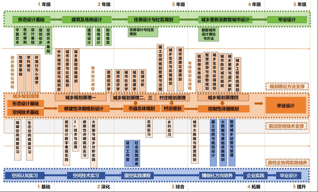 (3)紧扣国土空间规划行业数智化转型与高质量发展需求,构建"数智技术矩阵+学科交叉融合+项目实战驱动+校企协同创新"四位一体培养体系,着力培养学生的跨界整合能力和实践创新能力。