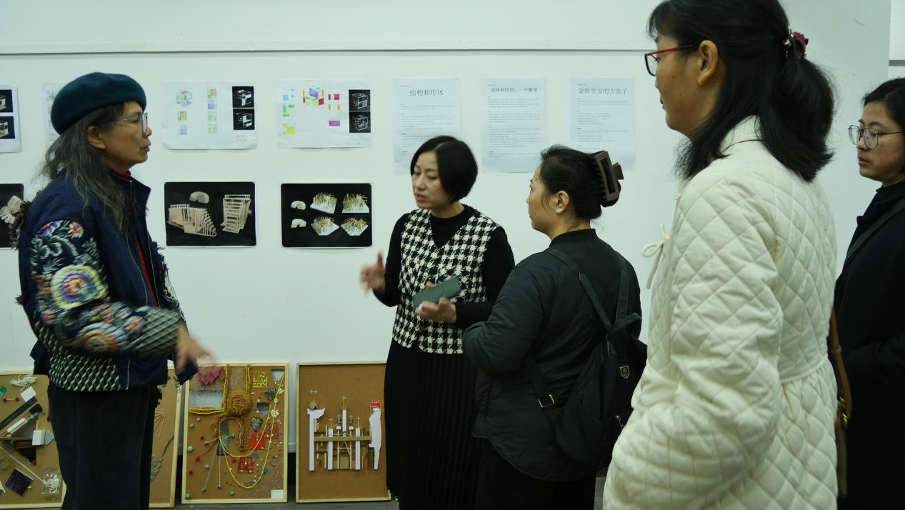 会前大家参观了湖南大学《设计基础I》课程作业展,湖大邹敏老师热情为大家讲解教学设计及学生作品。