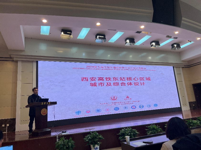 本次联合毕业设计的题目为“西安高铁东站核心区域城市及综合体设计”。由长安大学建筑学院副院长余侃华教授主持,陕西省建筑设计研究院(集团)有限公司集团公司董事、副总裁、副总建筑师陶小明;西安市城市规划设计研究院国土中心总工、正高级工程师、国家注册规划师周文林;中铁第一勘察设计院建筑院建筑所所长、高级工程师、一级注册建筑师亢轩等三位专家发言,对“合院及其拓扑变异在公建创作中的逻辑建构表达”、“西市空间规划及高铁东站片区情况介绍”、“西安东站建筑概念设计方案”、“西安高铁东站核心区城市及综合体设计”等内容进行了充分的分享与交流。