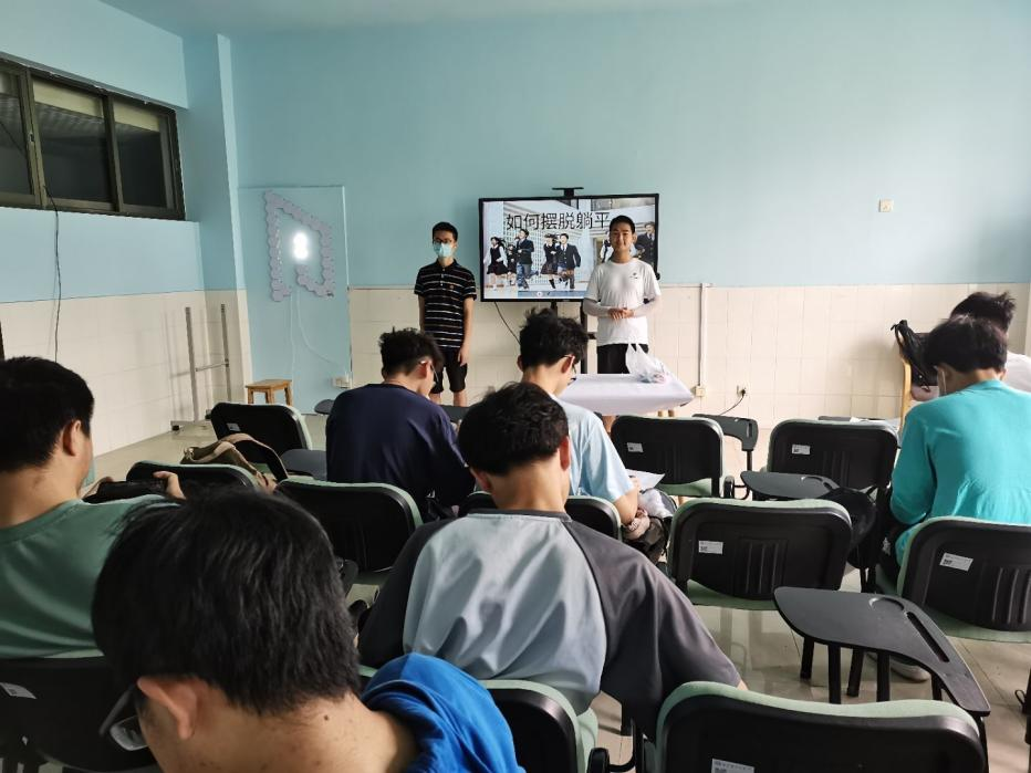 本次宣讲以“如何摆脱躺平”为主题,以“躺平是什么”、“为什么人会选择躺平”、“怎么改变躺平的状态”三个部分为核心,帮助同学们了解“躺平”并做出改变。