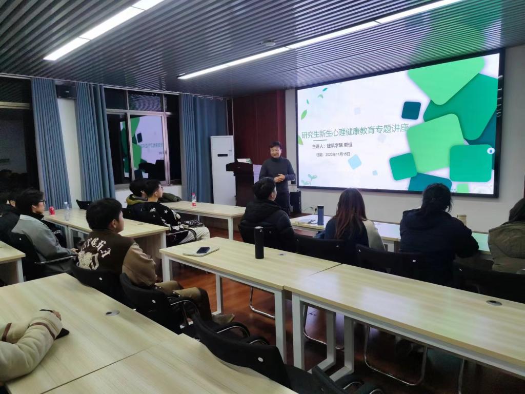 2023年11月15日晚上7:00,建筑学院于16教314会议室,召开“从心出发,向光而行”研究生心理健康教育专题知识讲座,建筑学院心理辅导员郭恒老师担任主讲。研究生新生40余人参加本次会议。