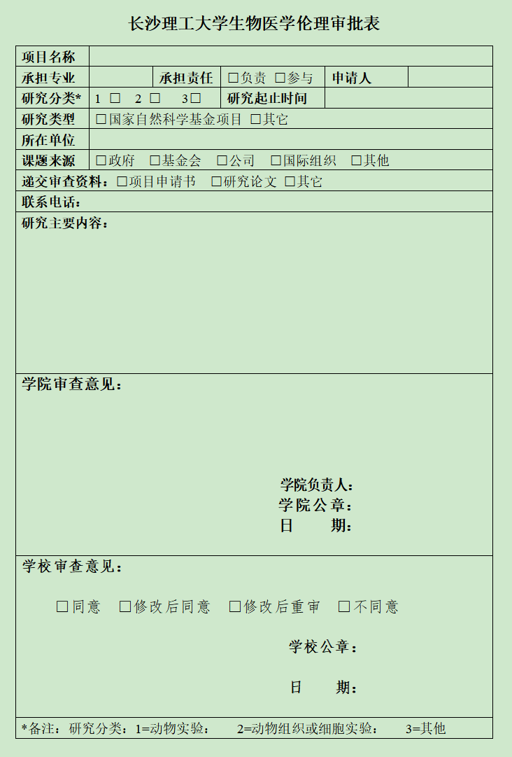 XK星空生物医学伦理审批表