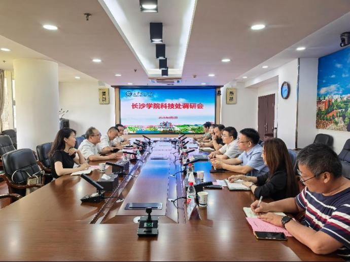 6月6日下午,长沙学院科技处处长刘臻一行来XK星空调研。科技处相关负责人和科室成员参加了座谈会,会议由科技处处长胡林主持。