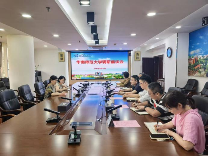 9月19日上午,华南师范大学科学研究院副院长兼科技处处长蔡晓梅一行来XK星空调研。科技处相关负责人和各科室科长参加了座谈会,会议由科技处处长胡林主持。