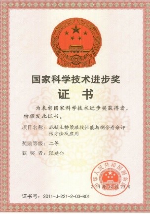 4)研发了公路桥梁检测、健康监测与维修加固若干关键技术,为完善我国标准规范体系提供了强有力的技术支撑,参与获国家科技进步二等奖1项。