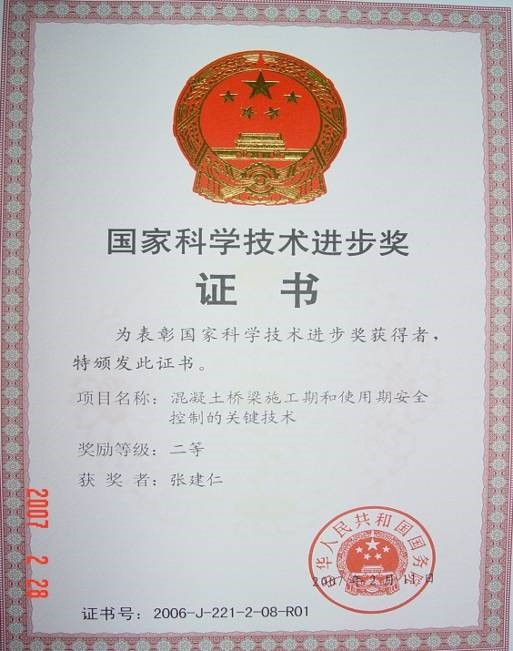 2)丰富和发展了混凝土桥梁施工期安全控制理论和关键技术,解决了一批具有世界影响的重大桥梁技术难题,产生了显著的经济效益和社会效益,主持获国家科技进步二等奖1项,参与获国家科技进步奖1项;