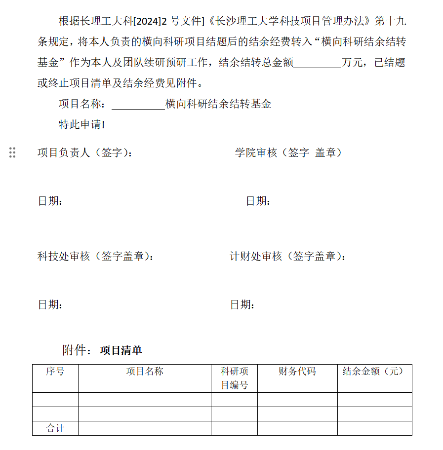 横向科研结余结转基金申请.docx