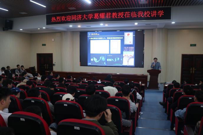 葛耀君从科学技术工程、大跨桥梁创新、论文报告图纸等三个方面进行了详细介绍。他从科学、技术和工程三者之间的联系与区别着眼,阐述了“科学发现-技术创新-工程创造”的观点。为在场师生介绍了各类型桥梁技术创新的发展史,并分享了各大跨度桥梁在设计与建造过程中的“抗风小故事”。最后,葛耀君为师生解答了“论文是什么,论文有什么,论文怎么写,报告是什么,报告怎么写,图纸是什么,图纸有什么”等问题。葛耀君深入浅出,讲解生动形象,给师生留下了深刻印象。